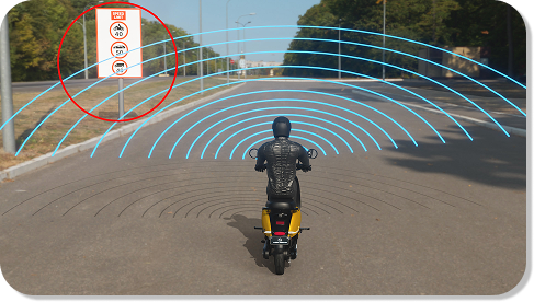 Liger’s onboard vision system uses intelligent image recognition to detect critical traffic signs directly in your path. Get timely beep alters for speed limits, stop signs and warnings helping you ride safer and stay informed on the go.